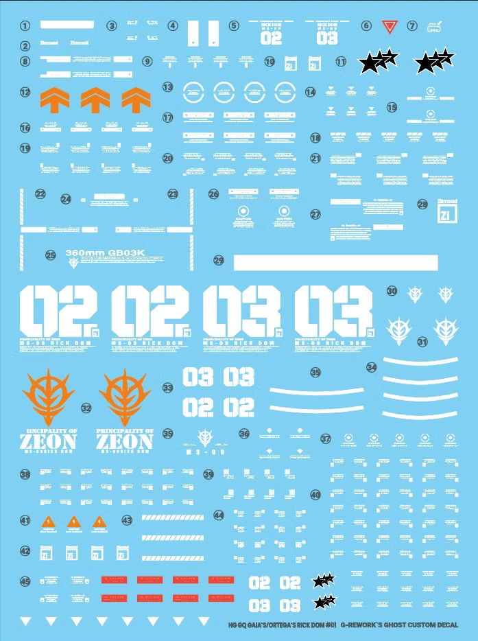 High-quality Korean waterslide decals for your [HG] [GQ] RICK DOM