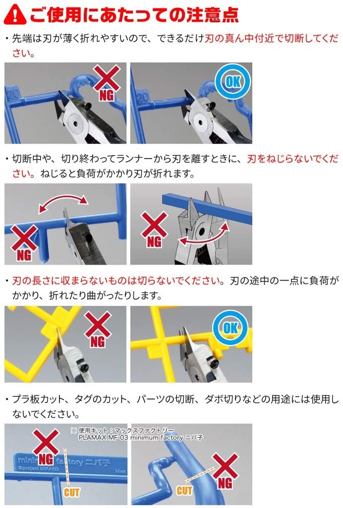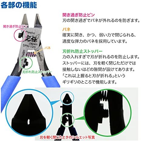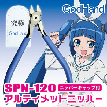 Precision Nippers SPN-120 with Protection Cap Ultra-thin single-blade nippers engineered for clean plastic model cuts. The GodHand SPN-120 delivers razor-sharp results with minimal whitening and cleaner edges than standard nippers. Requires just 2kg of cutting force for 3mm plastic, versus 3.5-10kg with conventional tools. Ideal for PS, PP, ABS, and PE resins up to 3mm thickness. Keep cuts centred on the blade, avoid twisting, and use only on thin plastic for optimal performance.